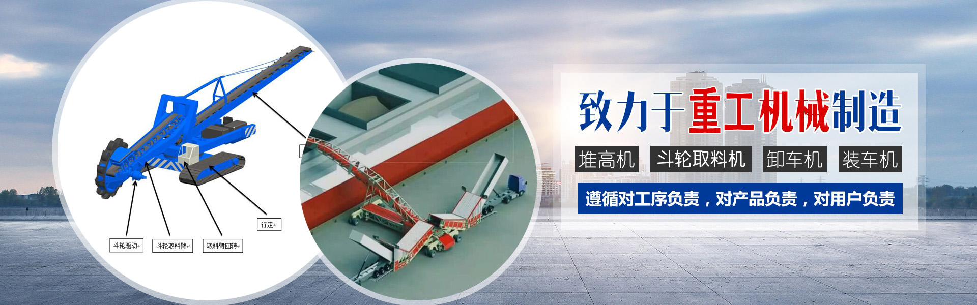 公司主營全自動裝車機、智能裝車機、智能遙控堆取料機、履帶裝車機、散裝石料裝車機、卸車機、智能堆高機,高分子團粒噴播機等,提供標準和非標準產品設計及生產。